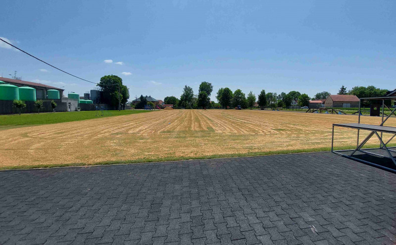 Během měsíce června 2025 byl proveden selektivní postřik plevelů a následně bylo provedeno vyčesání stařiny, provzdušnění, zapískování, zasetí, uvláčení a přihnojení travnaté plochy.